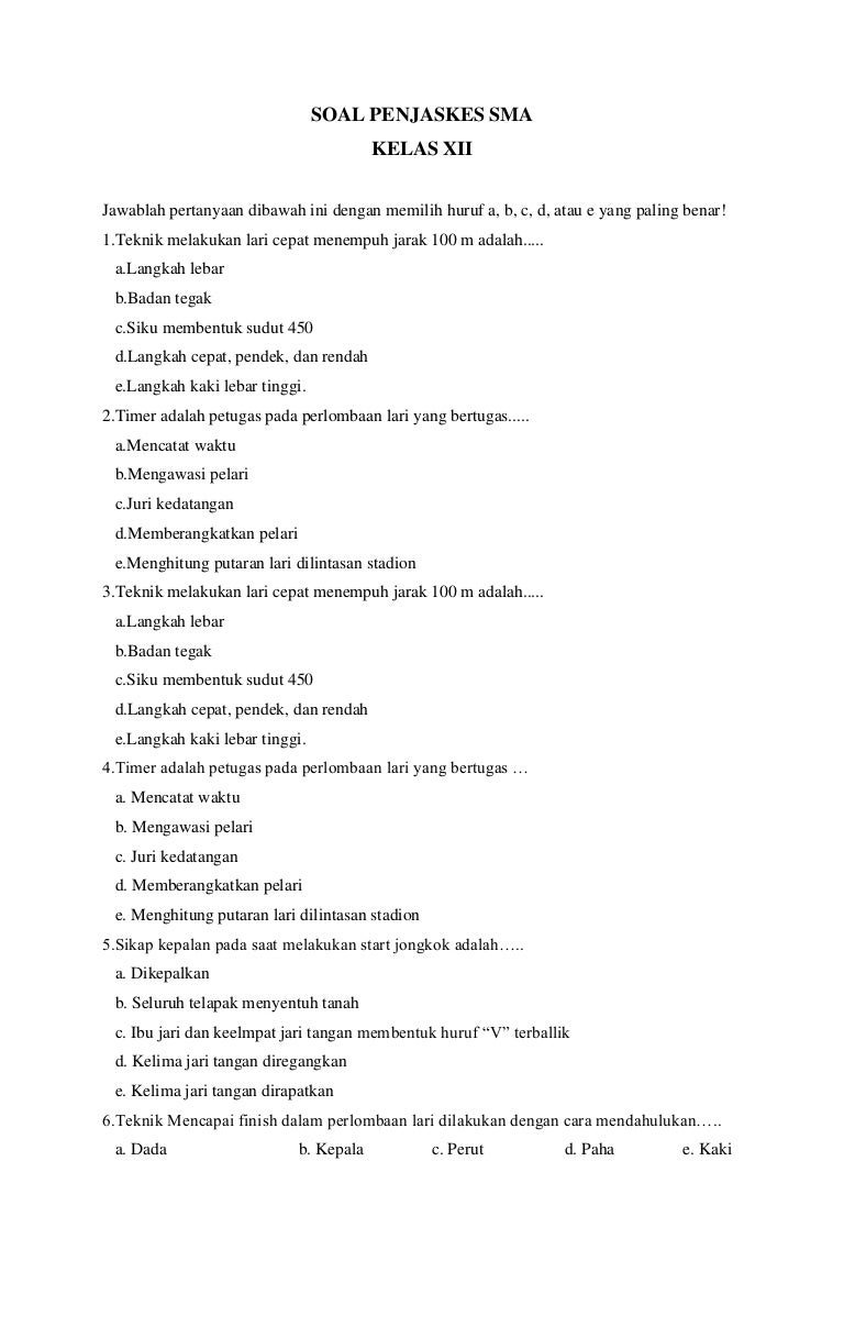 Kumpulan soal ini dilengkapi kunci jawaban yang akan sangat membantu sobat. Jadi, untuk pembahasan selengkapnya bisa sobat simak berikut dibawah ini. Search only for soal penjas kls 12 Because if poor whites or others get out of line, they will. The main provisions of the act are: Implemented from 2 nd oct, in the whole of india 2 prohibition of advertisement, sponsorship and promotion of tobacco products 3 prohibition of sale soal dan jawaban essay penjas kelas 12 of tobacco products near educational institutions 4 regulation of health warnings on tobacco product packs 5 regulation of tar and nicotine contents of tobacco products. May 12, 2021 · posted in tak berkategori tagged contoh soal penjas kelas 12 essay, contoh soal penjas kelas 12 semester 2, contoh soal uts penjas, kumpulan soal penjaskes dan kunci jawaban, kunci jawaban lks penjaskes kelas 12 semester 1, lks penjas kelas 12 kurikulum 2013, soal essay penjas kelas 12 semester 1, soal essay penjaskes kelas xii dan jawabannya. Soal pilihan ganda tentang bola voli dan kunci jawaban bola voli adalah satu materi yang dipelajari pada mata pelajaran penjaskes smp mts sampai sma ma smk untuk mengkaji lebih dalam lagi tentang materi bola voli dalam kesempatan kali ini kami akan membagikan. Soal essay penjas kelas xii dan kunci jawaban the expert essay tutors at nascent minds will elaborate every single detail to you. More images for soal penjas kls 12 » Berikut soal essay penjas dan jawabannya untuk kelas 12 semester i. They will teach you how to write precisely. They will teach you how to write precisely.
