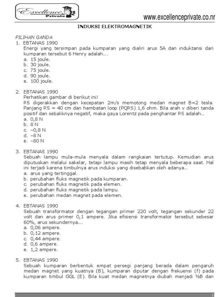 Soal Soal Kemagnetan A Pilihan Ganda from s1.studylibid.com Apr 26, 2019 · soal fisika kelas xii medan magnetik beserta penyelesaiannya by shidqi april 26, 2019 6 comments medan magnet, dalam ilmu fisika, adalah suatu medan yang dibentuk dengan menggerakan muatan listrik (arus listrik) yang menyebabkan munculnya gaya di muatan listrik yang bergerak lainnya. Besar dan arah induksi magnet di titik p adalah. Mar 19, 2021 · soal tentang aplikasi induksi magnet kelas 12. Pembahasan soal membuat magnet un fisika smp contoh soal dan jawab fisika tentang medan magnetbidang kumparan dan arah medan menghasilkan sudut 30 0. 19 mar, 2021 posting komentar. Sep 18, 2020 · medan magnet merupakan salah satu materi fisika yang dipelajari di kelas 12 semester 1, oleh karena itu disini saya mencoba untuk membuat latihan soal materi medan magnet beserta pembahasannya secara terperinci, bisa dijadikan latihan untuk para siswa agar lebih memahami materi medan magnet atau referensi oleh guru dalam membuat soal ulangan. Jan 28, 2021 · latihan soal dan pembahasan : Soal medan magnet soal dan pembahasan medan magnet soal fisika sma kelas 12 tentang medan magnetik dan pembahasannya …